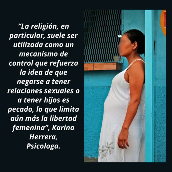 Vanessa Siliezar, educadora feminista, afirma que las parejas de muchas mujeres hondureñas las coaccionan a mantener relaciones sexuales sin protección, lo que lleva a múltiples embarazos no deseados. Además, las instituciones religiosas las presionan para no utilizar métodos anticonceptivos.