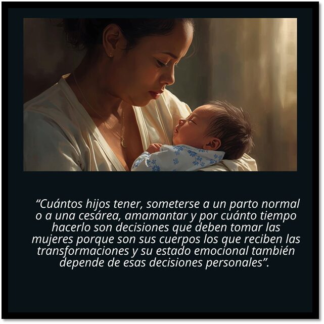 Estos casos forman parte de los derechos sexuales y reproductivos de las mujeres. Cuántos hijos tener, someterse a un parto normal o a una cesárea, amamantar y por cuánto tiempo hacerlo son decisiones que deben tomar las mujeres porque son sus cuerpos los que reciben las transformaciones y su estado emocional también depende de esas decisiones personales.